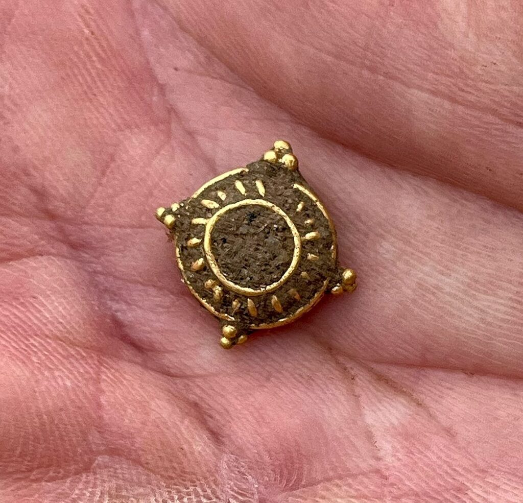 Med det samme kunne jeg se at den var af guld. Den var fyldt med jord, så jeg havde ingen forestilling om hvordan den ville se ud når den engang blev renset.