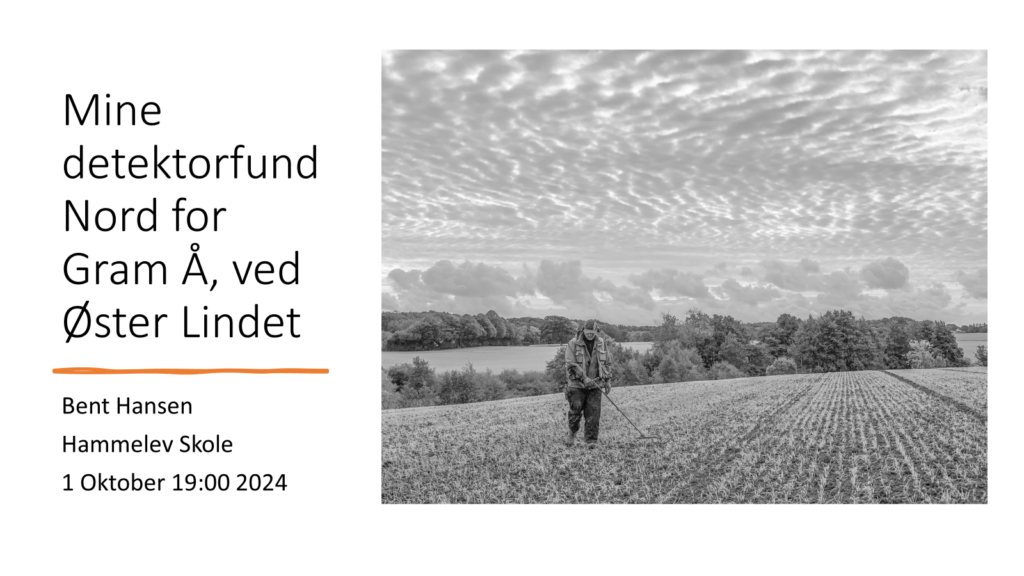 Kom til den Første klubaften i vores ny lokaler på Hammelev skole. Bent fortæller ca. 45 minutter om hans fund fra Øster Lindet. Der vil være kaffe og kage.
